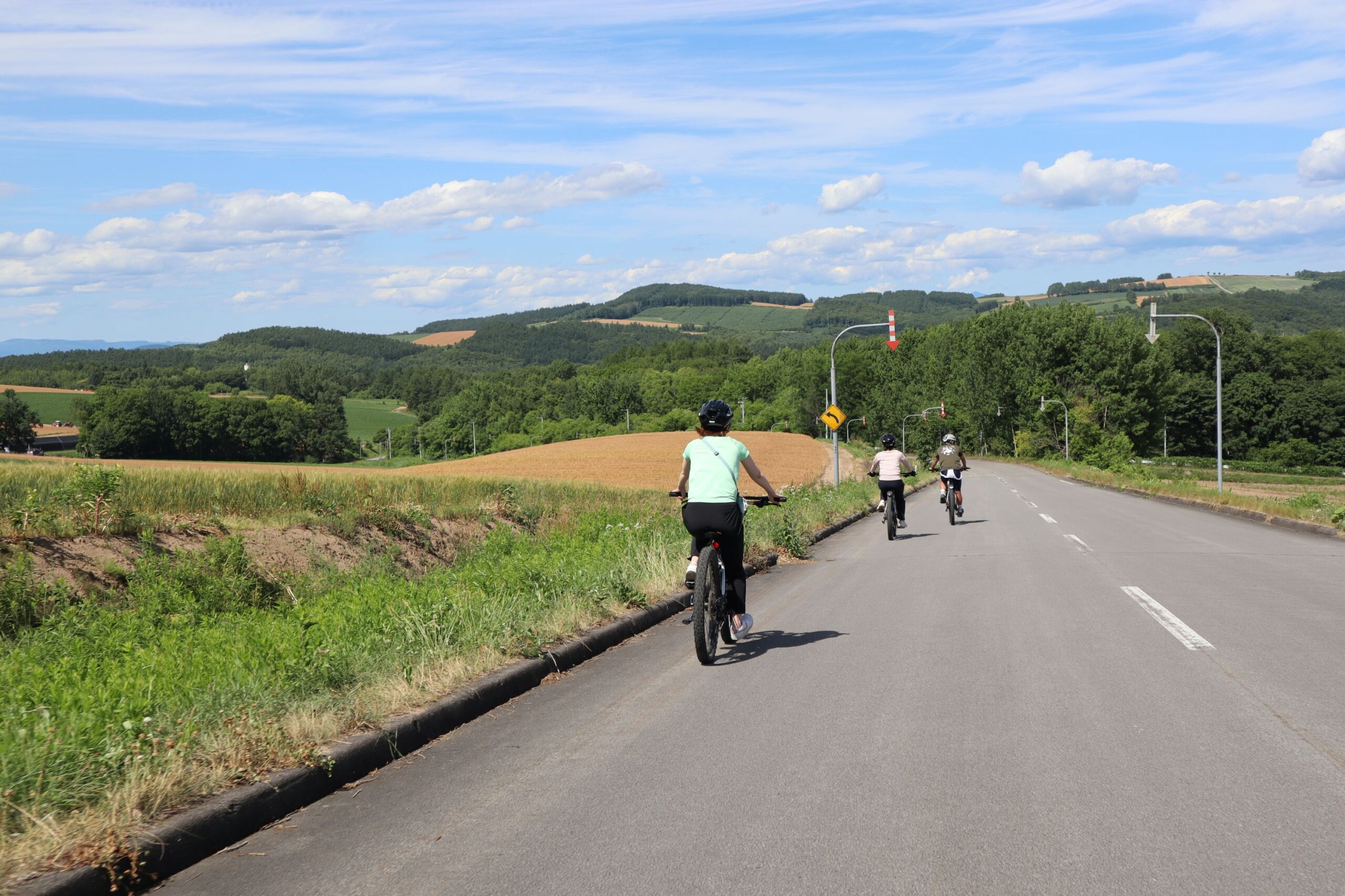 雄大な大雪山・十勝岳連峰を背景に、風を感じながら電動アシスト付き自転車(E-MTB)で爽快に巡るサイクリングコースです。