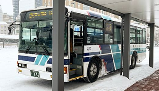 バス停は駅前の駐輪場を左に曲がったところにあります。