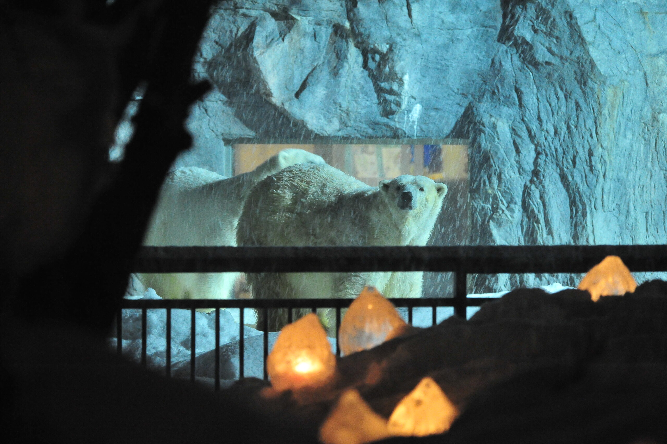 職員手作りのアイスキャンドルに優しく照らされた夜の動物園は、別世界に来たかのような幻想的な空間に。